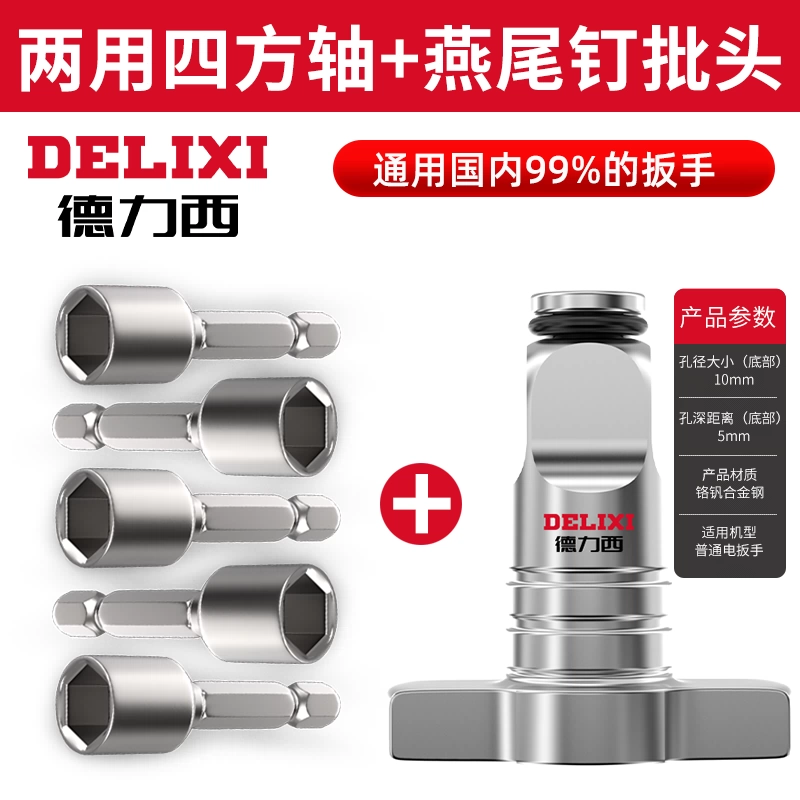 德力西电动扳手转接头两用四方轴 [交易快照] 颜色分类:两用四方轴+燕尾钉批头套装