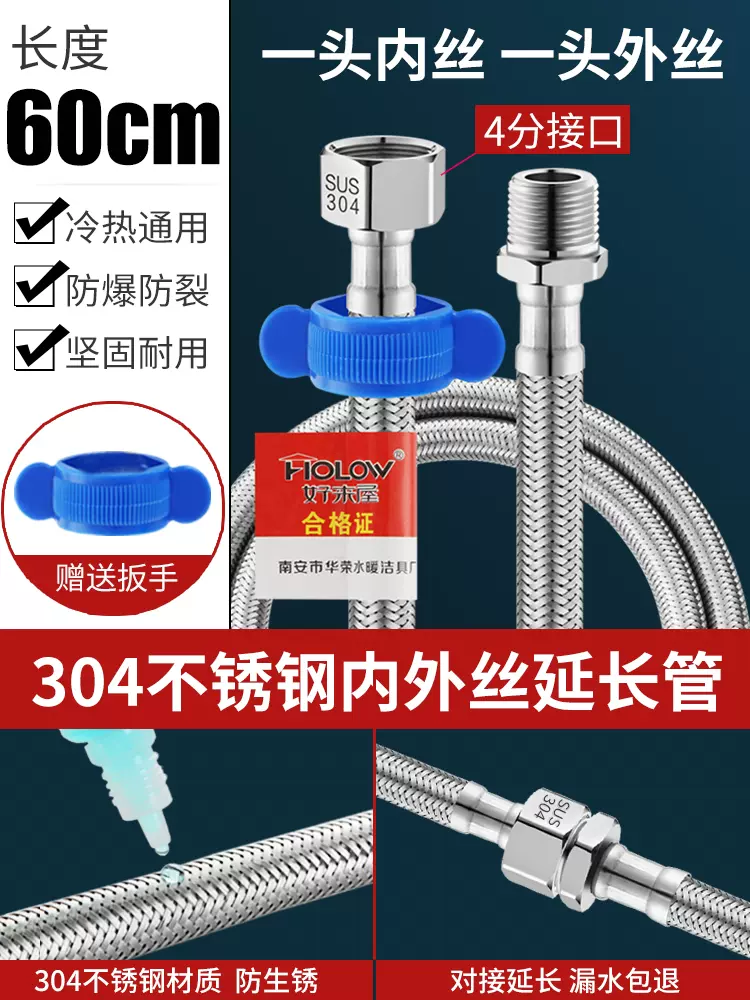 分内外丝编织耐高温防爆延长管 [交易快照] 颜色分类:60公分(4分内丝+4分外丝)