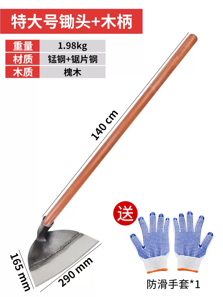 锄头除草神器工具种菜家用 [交易快照] 颜色分类:锰钢锄【特大号+1.4米槐木柄】(农田锄草锄头)