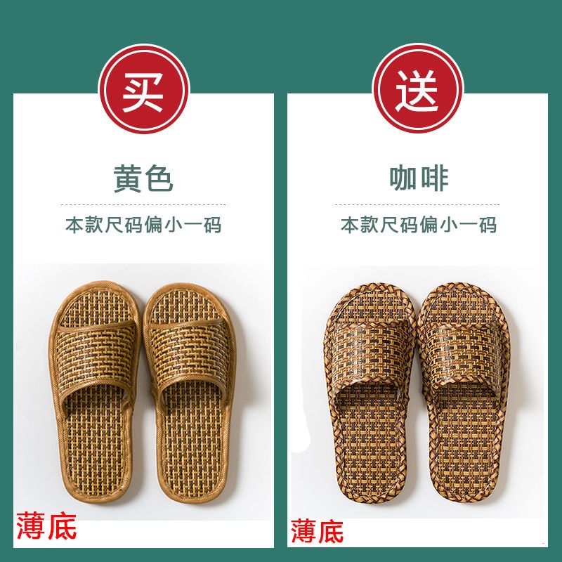 买一送一家用凉拖鞋男女夏季藤草编竹子室内家居家防滑软底亚麻拖