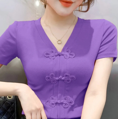 短袖t恤2023夏季新款中国复古 [交易快照] 主要颜色:雾紫色尺码:M 【建议60-95斤以内】