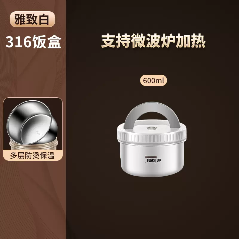 图拉朗316不锈钢饭盒保温闷烧壶 [交易快照] 颜色分类:316淡奶杏600ml单饭盒