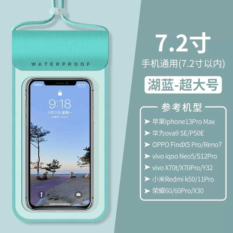可触屏温泉专用密封手机防水袋 [交易快照] 颜色分类:湖蓝-超大号【面容解锁丨触屏零延迟】