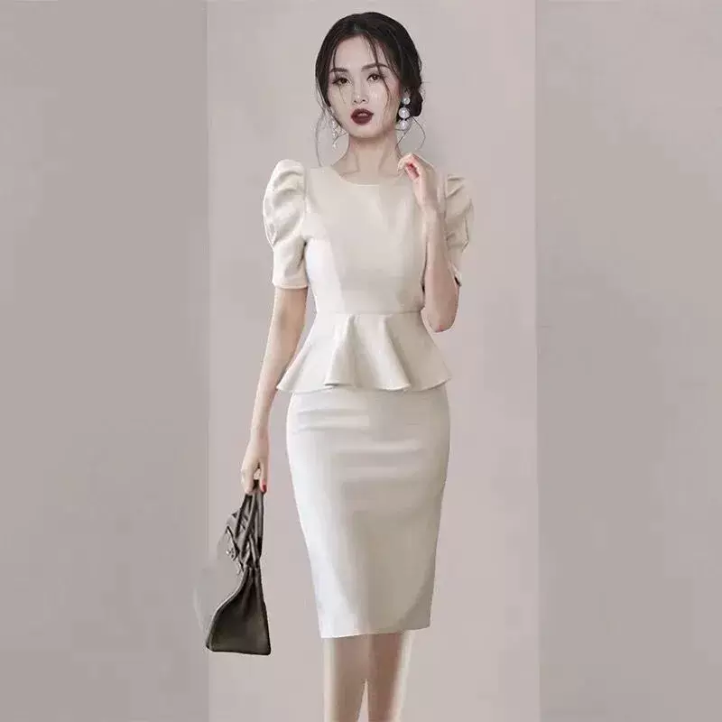 新款包臀裙女短袖假两件套连衣裙 [交易快照] 颜色分类:杏色尺码:M[95-105斤]
